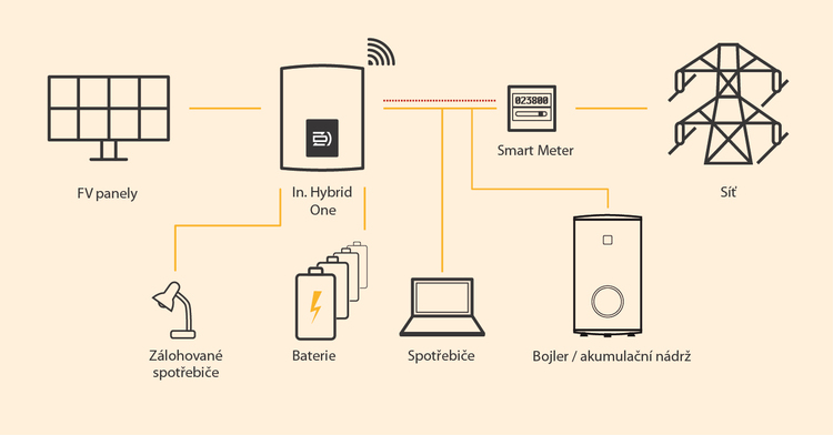 Vyrobená energie se využívá v daném objektu a přebytky se ukládají do bateriového úložiště. Baterie slouží také jako záložní zdroj při výpadku dodávky elektřiny. Lze rozšířit např. o bojler pro ohřev TUV nebo TČ. Možnost prodeje energie, kterou nevyužijete.